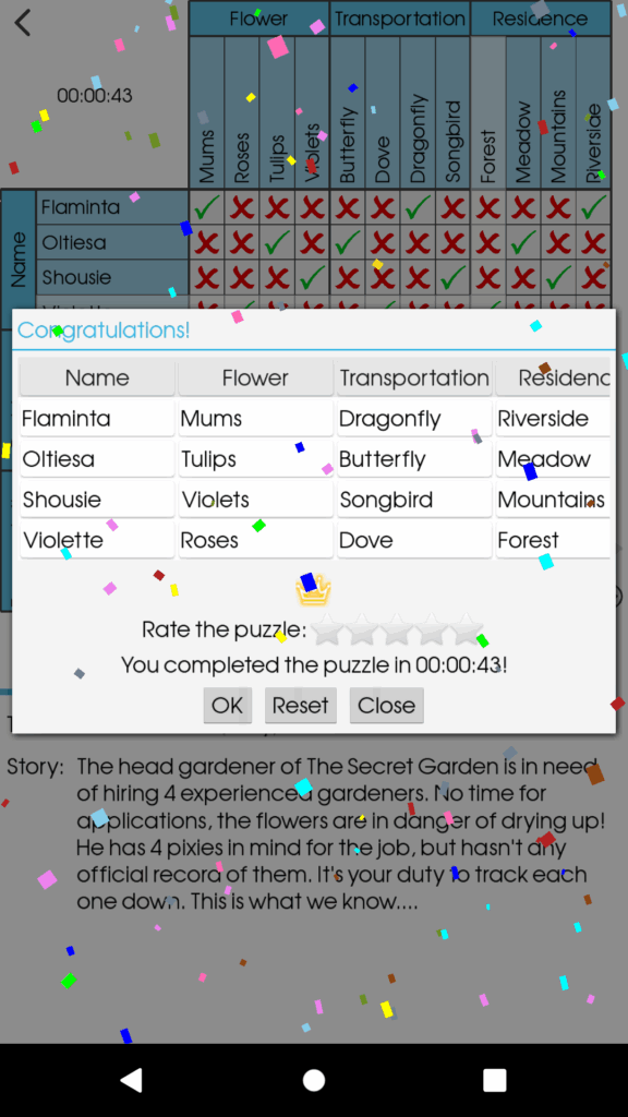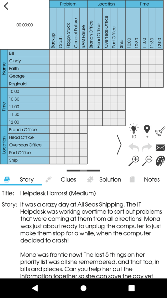 Logic Grid Puzzles require the solver to deduce the relationships between different people, places and things based on a limited number of clues given in the puzzle. Every item on the board belongs to one and only one person, no item will ever be shared. Using only the clues provided and simple deductive logic and reasoning, fill in the grid with crosses and ticks to determine the solution.