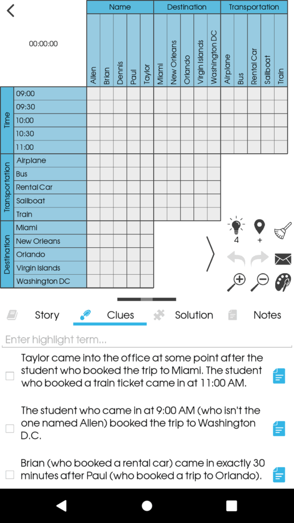 LoGriP provides a handy interactive grid that will help you solve the puzzle based on the given clues.